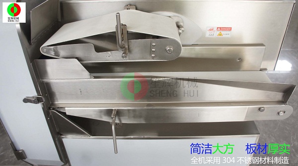 - 產品優勢: 本SH-200加大型切菜機,可切葉菜類,如長蔥,蒜苗,韭菜,芹菜,白菜,青菜等,也可切條狀瓜果,如蘿卜,黃瓜,辣椒,茄子,等等。可切片(厚薄度可訂做),切段切條(長短度可調)。輸送帶速度和轉刀速度采用變頻器可調,可單獨控制。一機多用,輸送帶加寬到200mm,產量更高,適度更廣。皮帶拆卸和安裝都很快捷方便,機器清洗和保養更容易。這種加大型切菜機適合大型食品加工廠,餐飲行業,飯堂,餐飲配送中心使用。